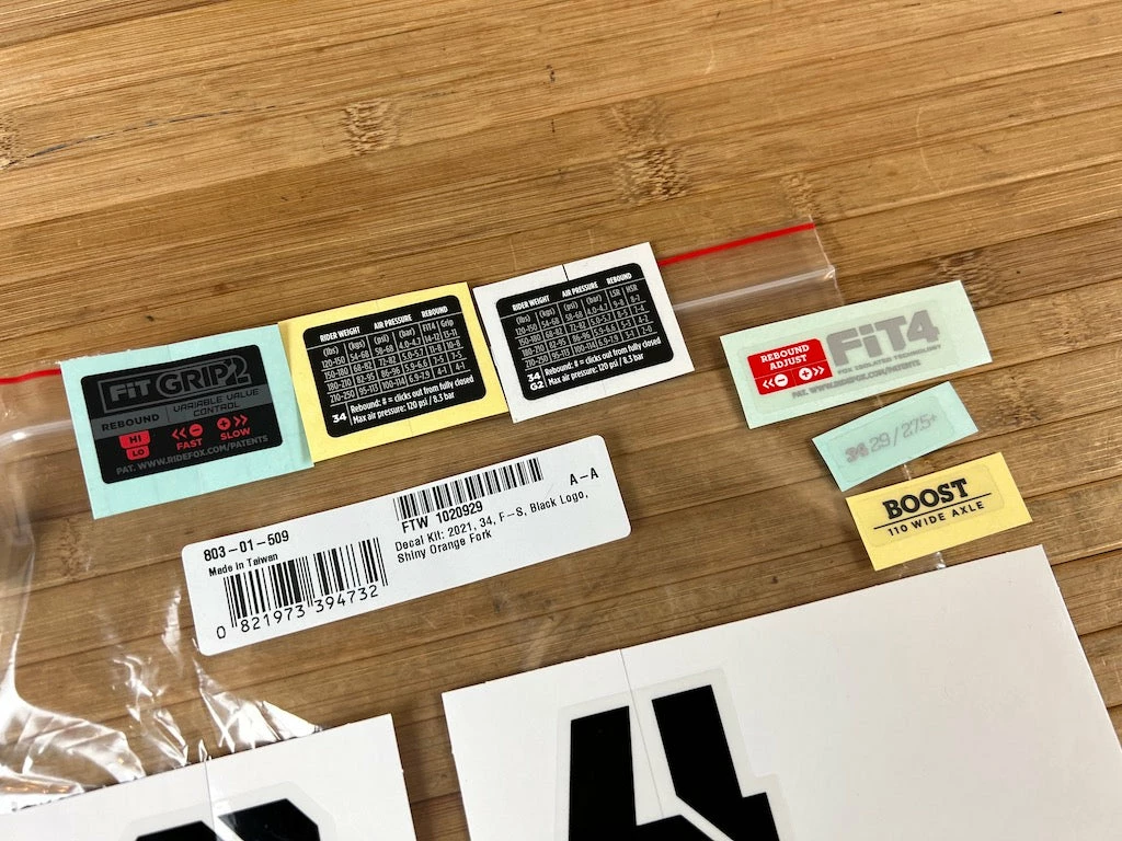 Decal Kit: 2021 34 F-S Black Logo Shiny Orange Fork