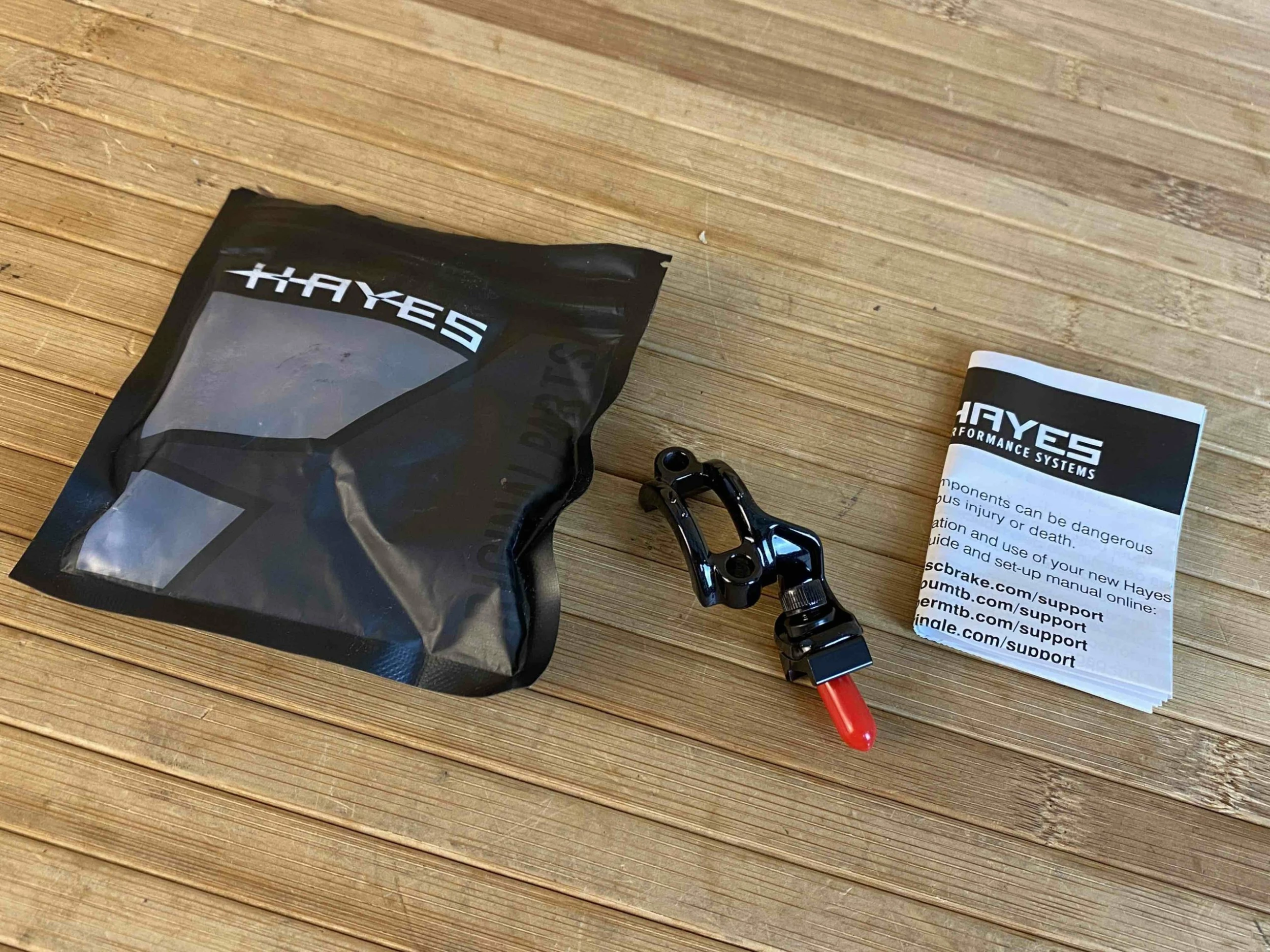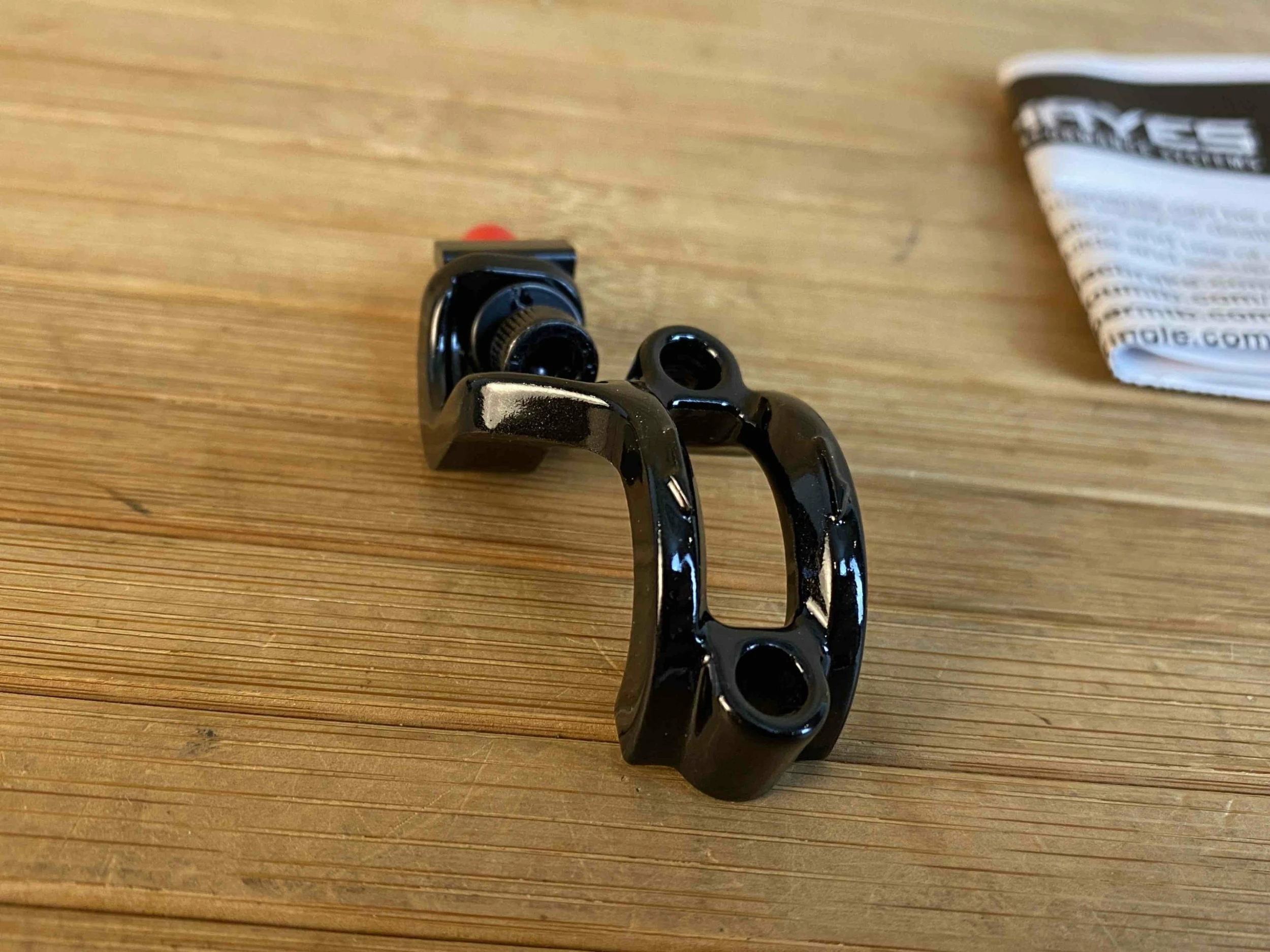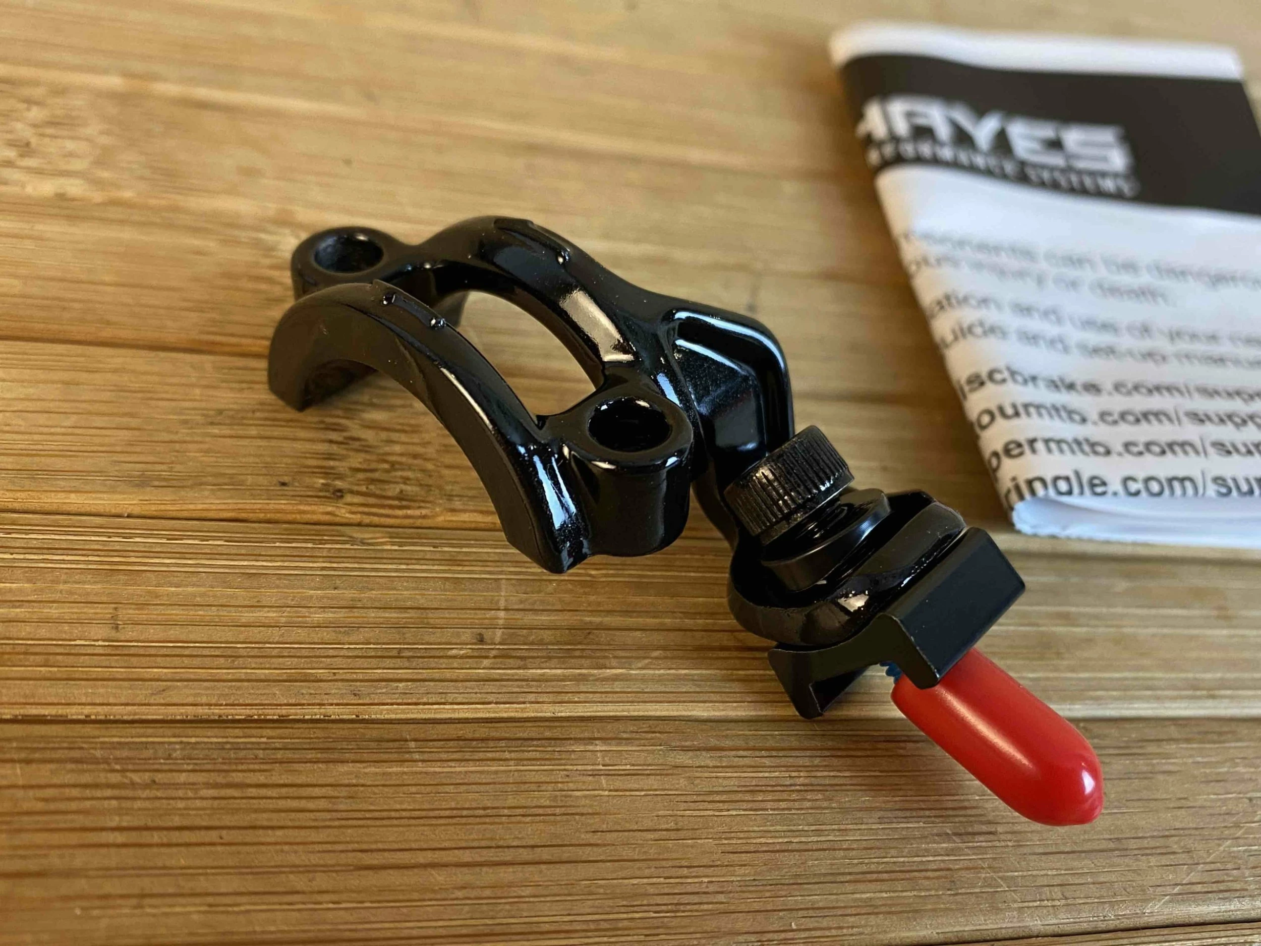 Die Peacemaker-Schelle schafft ein aufgeräumtes Cockpit und Kompatibilität zwischen Hayes Dominion A4 / A2 Bremshebeln und SRAM Schalthebeln.