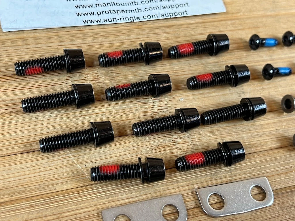 Enthält Clamp Shims sowie Bolzen/Schrauben für Brücke, Ausfallenden, Mud-/Leg-Guard.