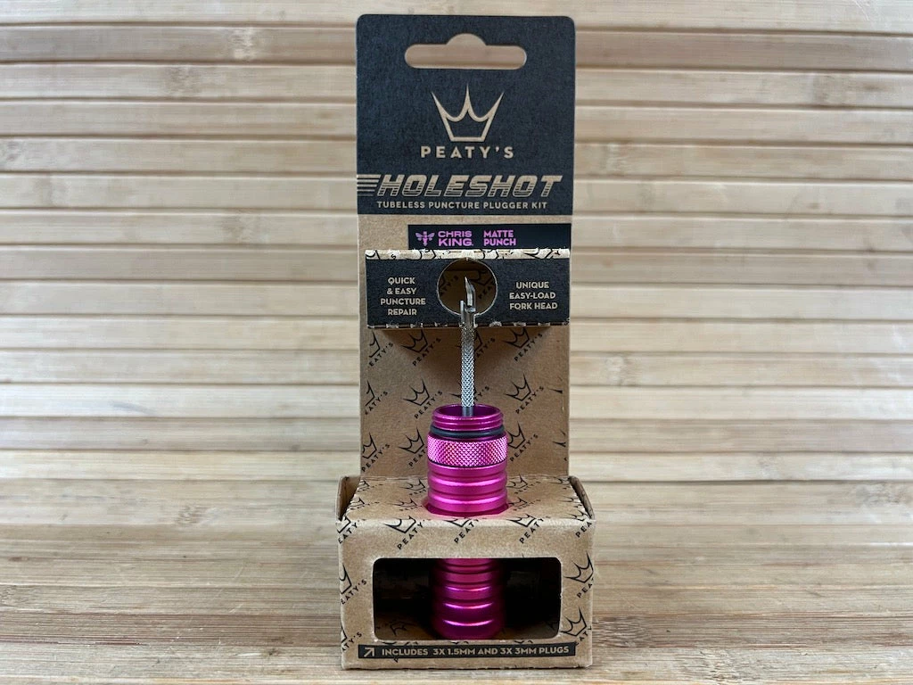 Peaty’s spezielles Nadeldesign erleichtert das Einsetzen verschiedener Pluggrößen in die Vertiefung der Nadel und ermöglicht es, diese direkt in den Reifen zu drücken. Die offene Seite der Spitze ermöglicht es dann, das Tool einfach wieder aus dem Loch zu ziehen, ohne den Plug mit herauszuziehen.
