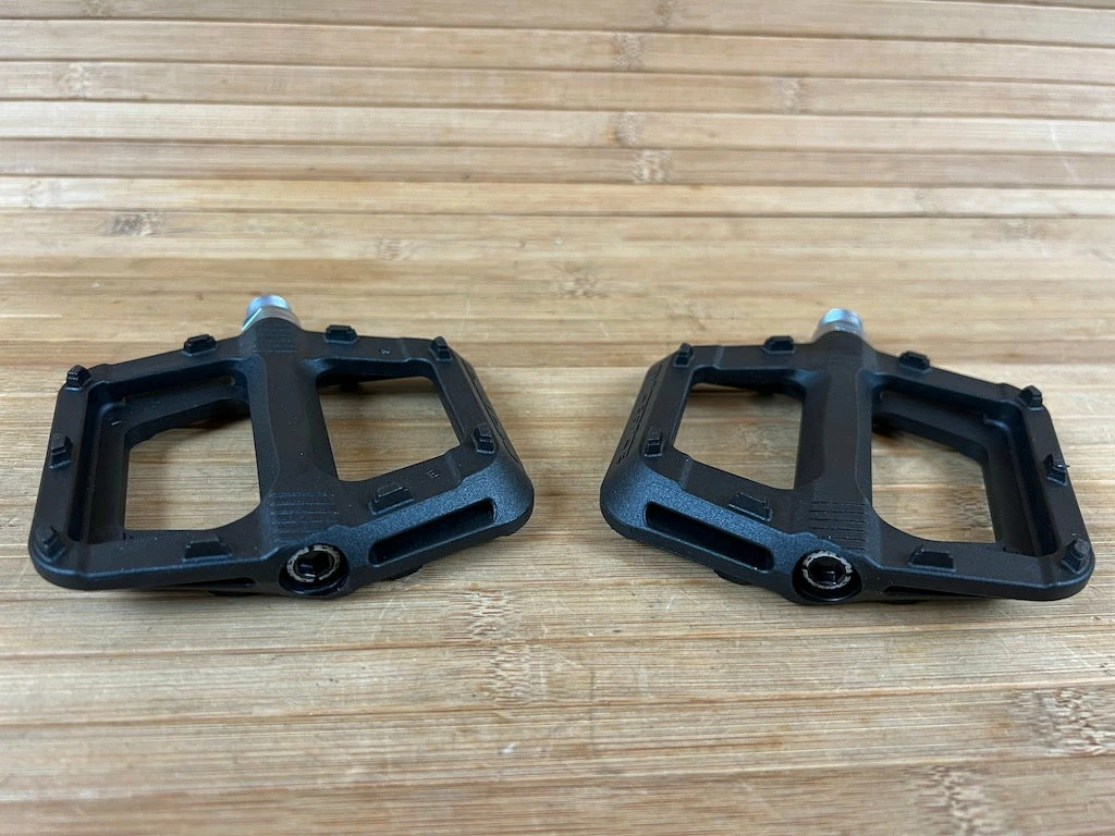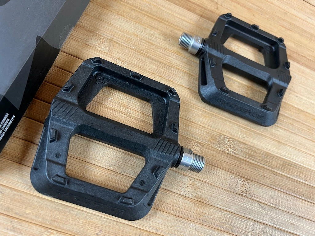 These pedals feature burly composite nylon, a slim, concave design, and built-in traction treads with molded traction pins for extra sure footing.