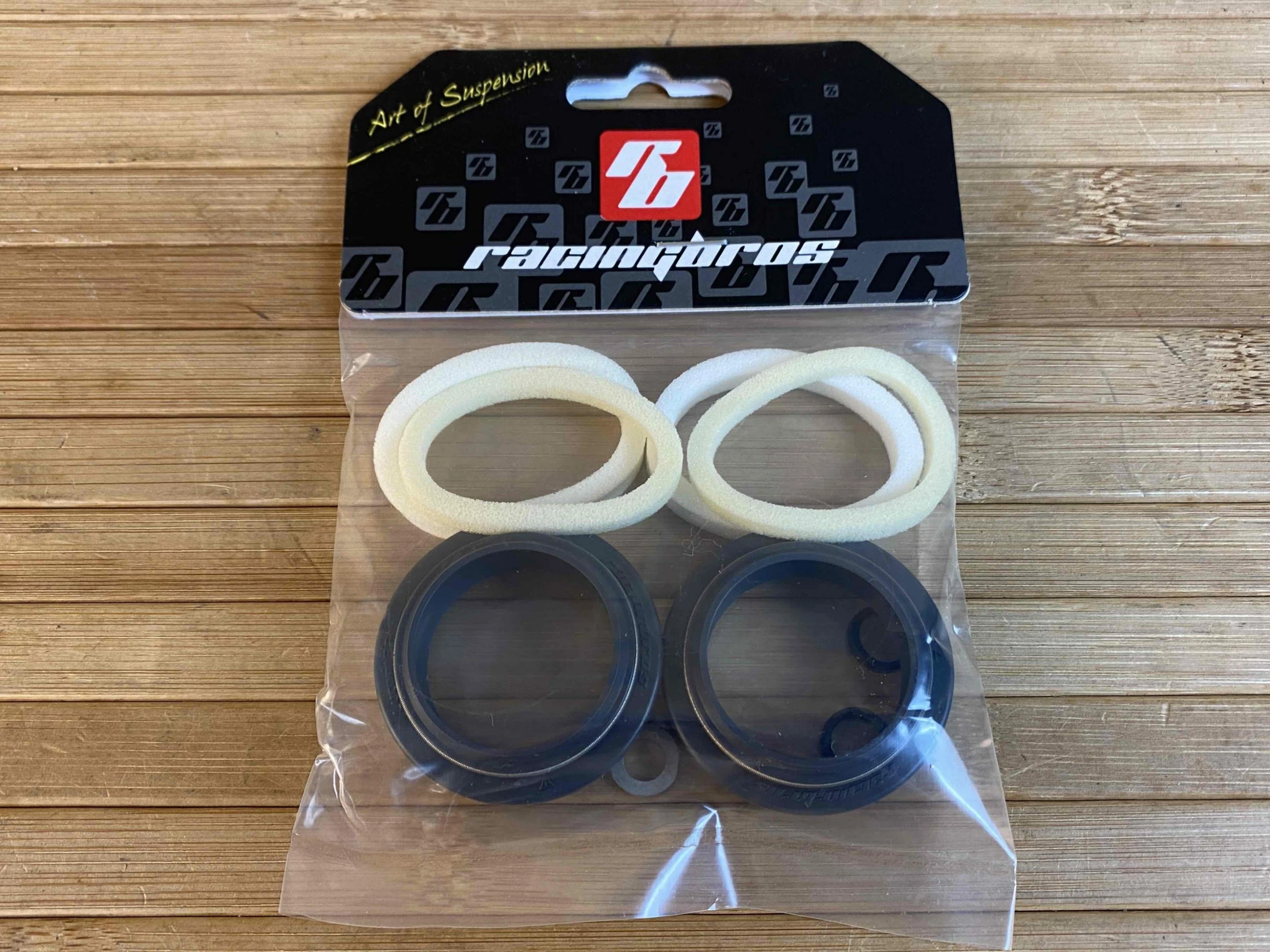 Die einteiligen Modi Performance Abstreifer von Racingbros vereinen Staubabstreifer und Öldichtung in einem Bauteil. Dadurch halten sie, im Vergleich zu herkömmlichen zweiteiligen Dichtungen, einem höheren Systemdruck von bis zu 20kg/cm² stand.